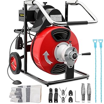 Vevor 50 Feet By 0 5 Inch Electric Drain Auger W 2 Wheels Cutters Foot Switch Drain Cleaner Machine Sewer Snake Drill Drain Auger Cleaner For 1inch To 4inch Pipes Amazon Ca Tools Home Improvement